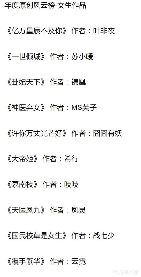 没想到大家都对第三届中国原创文学风云榜的男女生作品TOP10是哪些?感兴趣,不过这这篇解答确实也是太好了