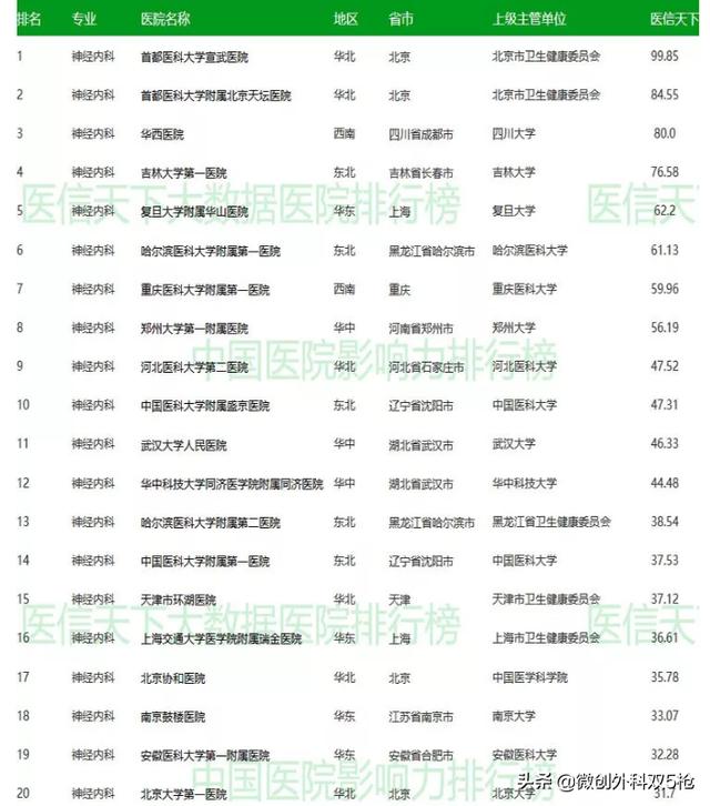 根据2019年的医院排行榜可以看出。在专科领域。神经内科比较好的医院有首都医科大学宣武医院、首都医科大学附属北京天坛医院、四川华西医院等。北上广深的医疗资源都非常紧张。尤其是在北京看病一票难求。