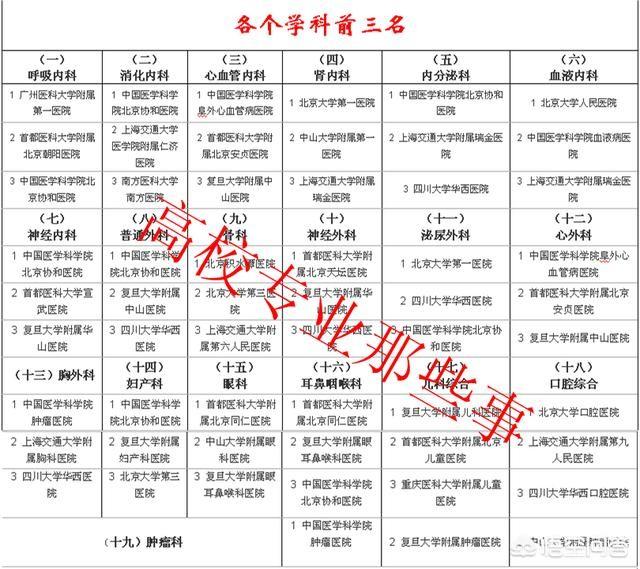 协和虽然总数不是第一。但是在19个临床中得了9个第一。11个前三。实力绝对国内第一。