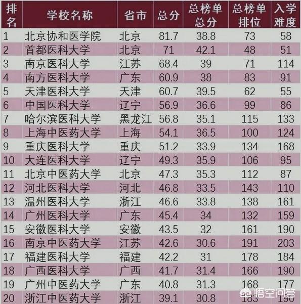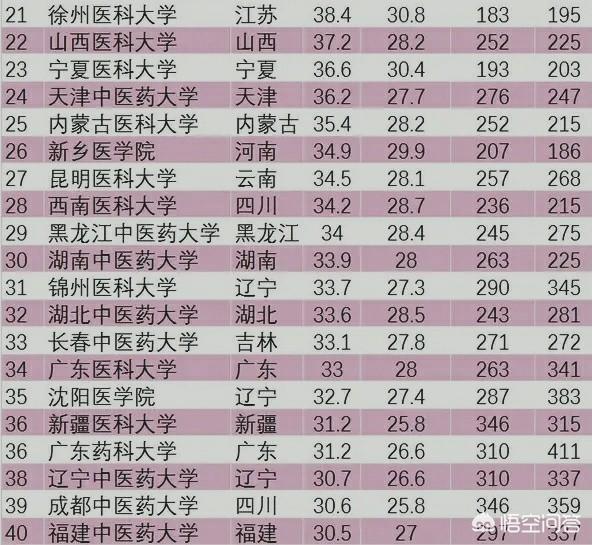 这是排名前四十的医科类大学。位于那座城市。还有得分情况以及排名情况都是比较直观的。大家可以根据自己的需要看看。如果想要详细的了解。完全可以下去好好了解一下。菜鸟只是提供一个大概的参考而已。