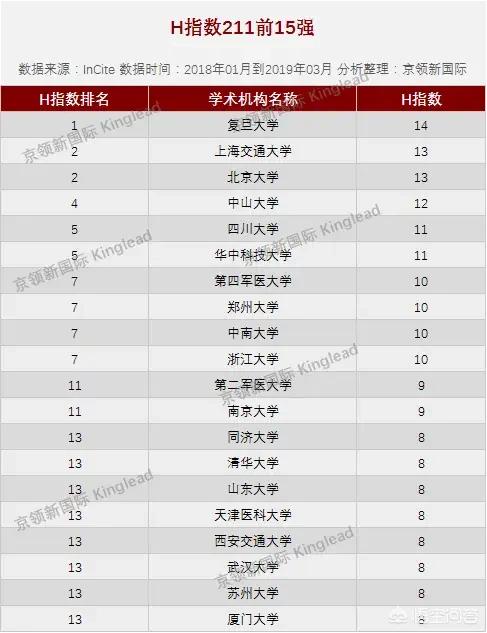 世界大学临床医学H指数1000强:22所211高校上榜谁是前15?
