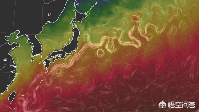 在北太平洋有一条非常强势的暖流——日本暖流。又叫做黑潮。它是北赤道暖流在菲律宾东侧转向形成的。尽头就是日本。太平洋北边还有一条寒流——千岛寒流。也指向日本附近的海域。