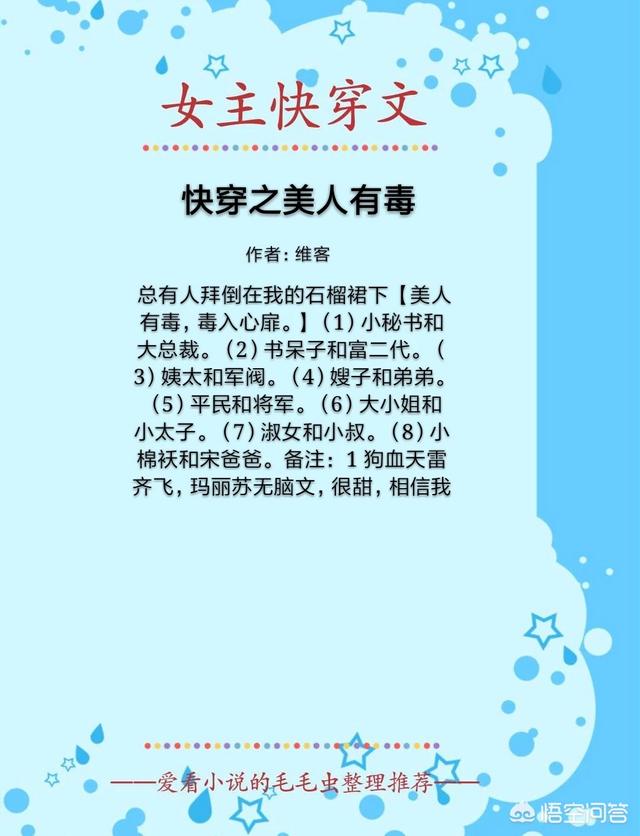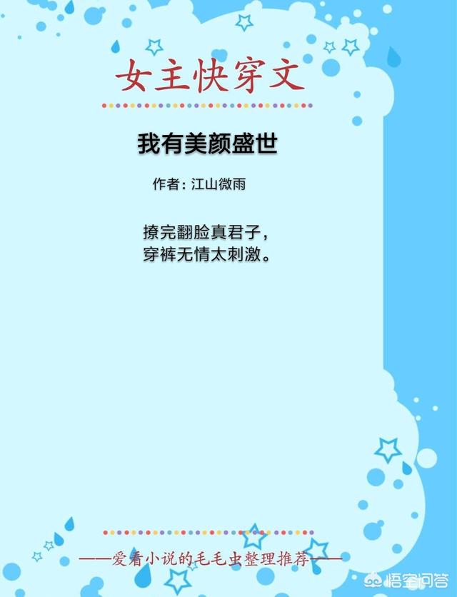前两个月。我特别迷快穿文。因为这类文。相当于一本小说里每个世界都是单独的故事。所以不用担心什么一口气要看完。感觉那段时间我熬夜的频率明显减少。而且快穿文。一般都是虐渣男、斗白莲花、炮灰逆袭什么的。所以看了心情都会很好。