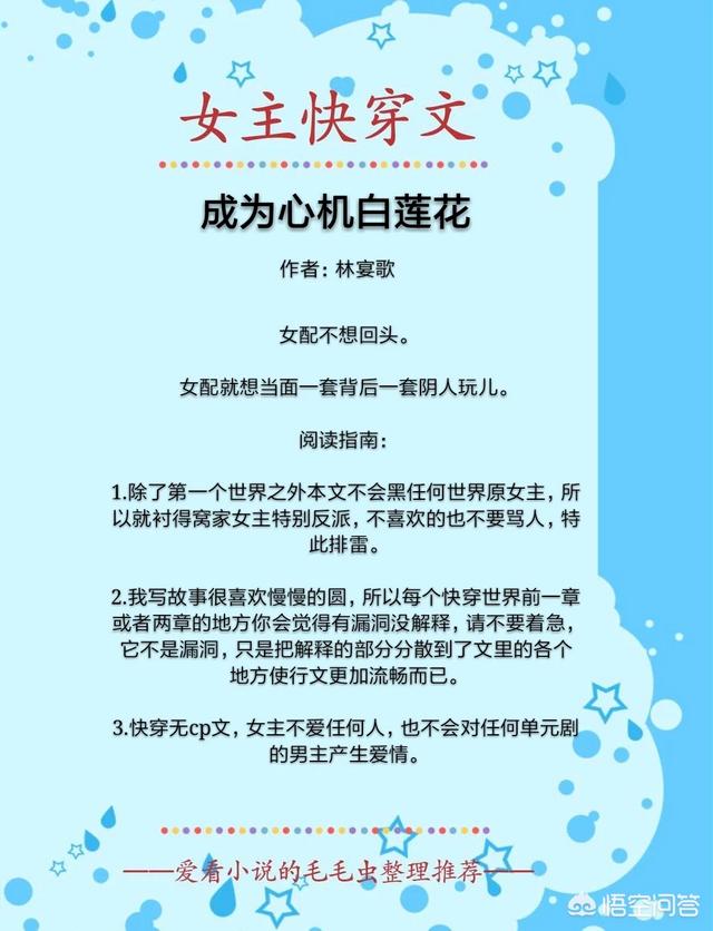 每一个世界的女主都是不得善终的女配。男主也是悲惨男配。女主就是快穿到每个世界。改变女配男配的结局。顺便打脸男主女主 。女主可渣可婊可坦坦荡荡。男主又苏又宠大灰狼小奶狗面面俱到。挺好看的。