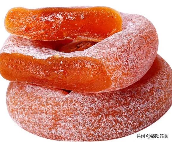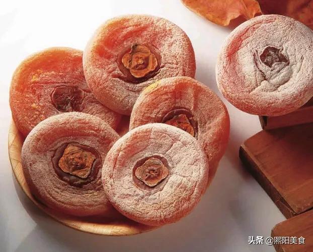 3、柿饼外皮有一层白霜。那不是坏了。而是柿中的糖分释出形成的。出霜的柿饼在口感上更甜。
