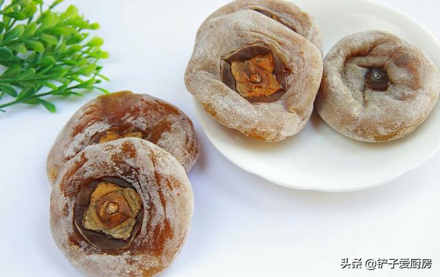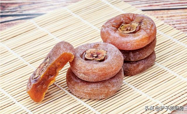 5、值得注意的是。柿饼不可晒得太干。如果太干了就不会有白霜释出。既使你用柿子皮和厨房纸包裹作用也不太。