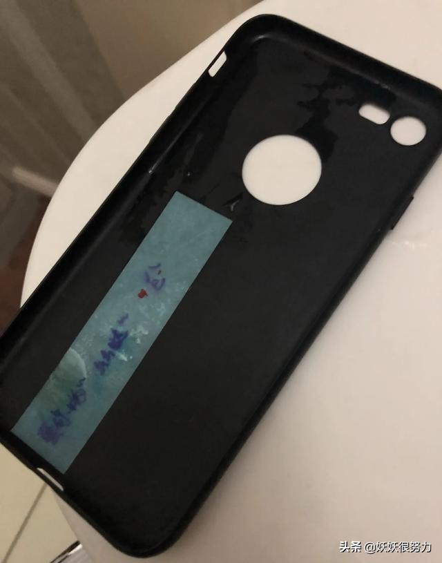 手机是黑色的。我拿下来之后发现里面还有个小纸条。纸条也被打湿了。上面写着:我爱你。么么哒。还有一个亲亲^3^表情。