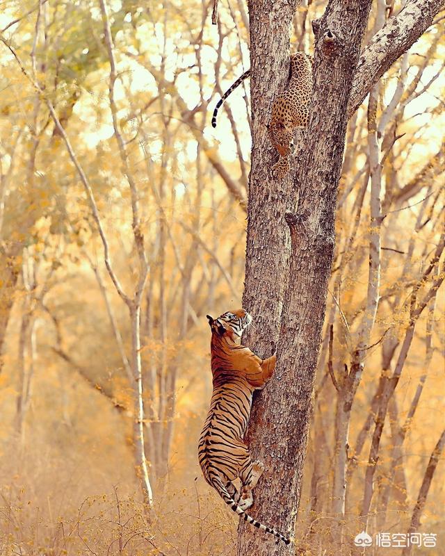 老虎是典型的力量型大猫。而豹子虽然总的来说也属于力量型的。但仍保留了相当的灵活性。豹是前肢力量相对最弱的豹属。但也是最擅长爬树的豹属。在一定程度上具有头朝下下树的能力。这是完美爬树者的标志。