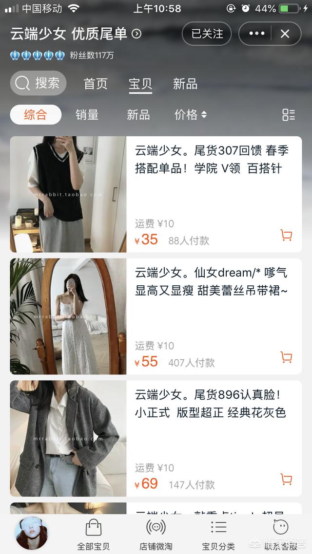 第一家。黑牛奶少女。她家的衣服有些质量还是不错的。如果选的好的话。基本不会撞衫。价位10~80左右。