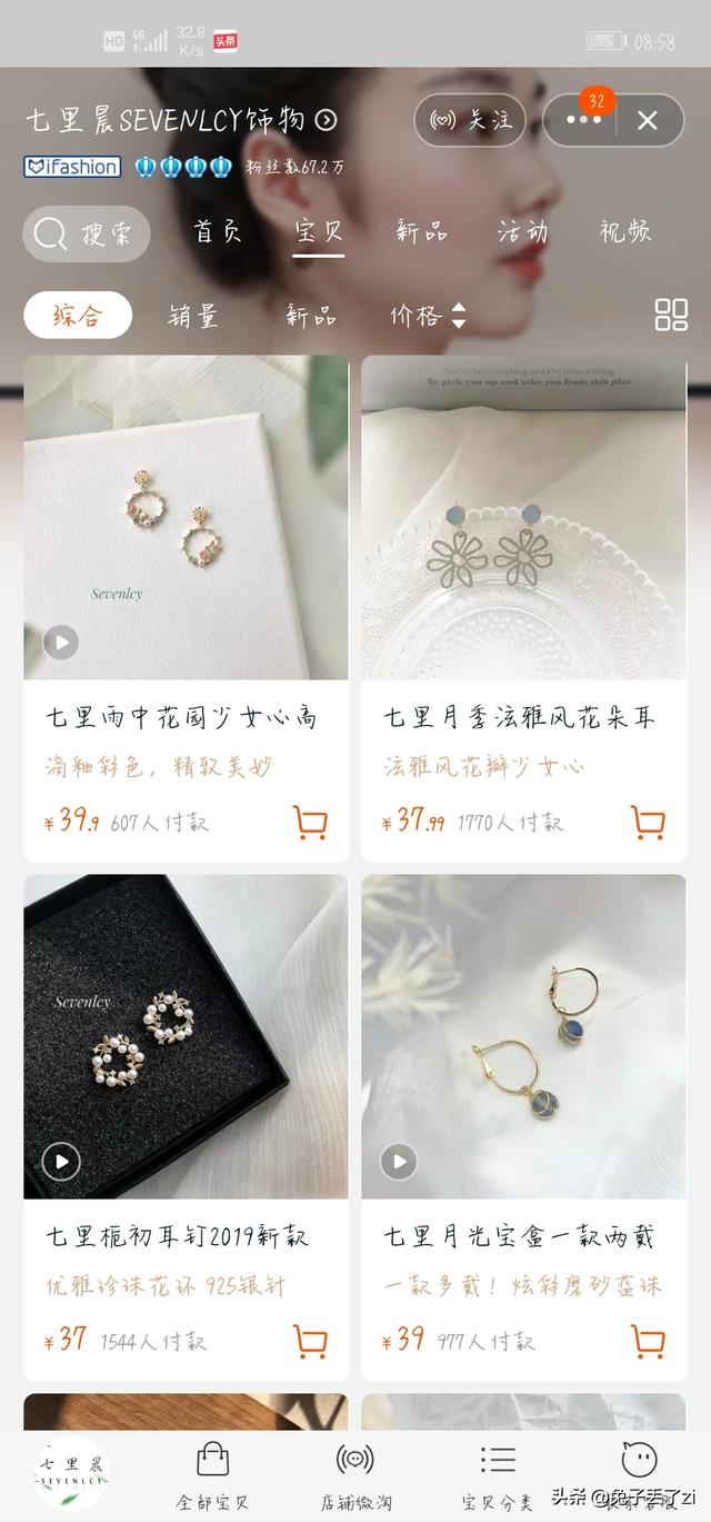 第八家。七里晨sevenlcy饰物。耳环跟项链我都是比较喜欢倾向于小清新简单类型。适合日常用到的。他们家的耳环也是属于日常简单款式。价位在20~90左右。