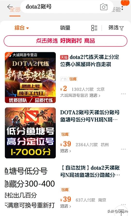 有需必有求。我在淘宝上查了dota2账号的关键词。结果出现无数店铺卖号。各种段位的销量高达2300多。因此促进高分号增多。