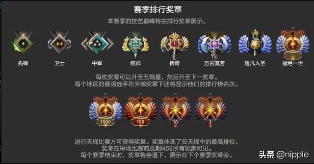 同时每个赛季还有排行奖章。分为先锋 卫士 中军 统帅 传奇 万古流芳 超凡入圣 冠绝一世。以及前1000-第一名的奖章。