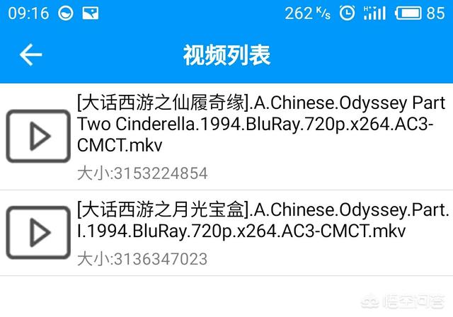 我们以大话西游磁力链接为例。检测到链接。打开以后直接就两个视频资源。小编测试了一下。是可以播放的。不用下载。这里就不一一截图啦!