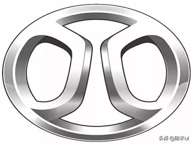 北京汽车的车标。一个椭圆形的圈。框着“北”字的变形体。