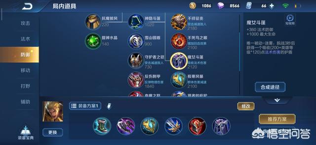 出装推荐:抵抗之靴、暗影战斧、极寒风暴、破军、碎星锤、魔女斗篷。