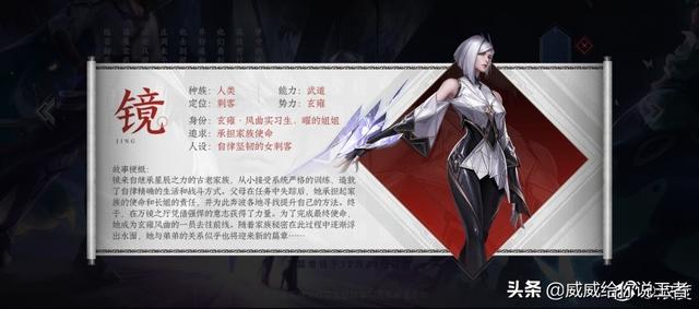 传说中的女英雄“镜”已经官宣。定位为刺客英雄。传言即能上单也能打野。伤害打得过铠。操作秀得过李白。但是也是出了名的难度最高的英雄了。在曜的背景故事中提到他有位姐姐-镜。从小就他管得很严。并且不管是学习还是战斗都高过他一筹。这让曜特别想超越他姐姐并且证明自己。但是当时并不确定镜这个英雄是否会上线。直到今天玄雍资料片第二篇解锁后。镜这个英雄正式官宣了。是玄雍阵营的刺客。