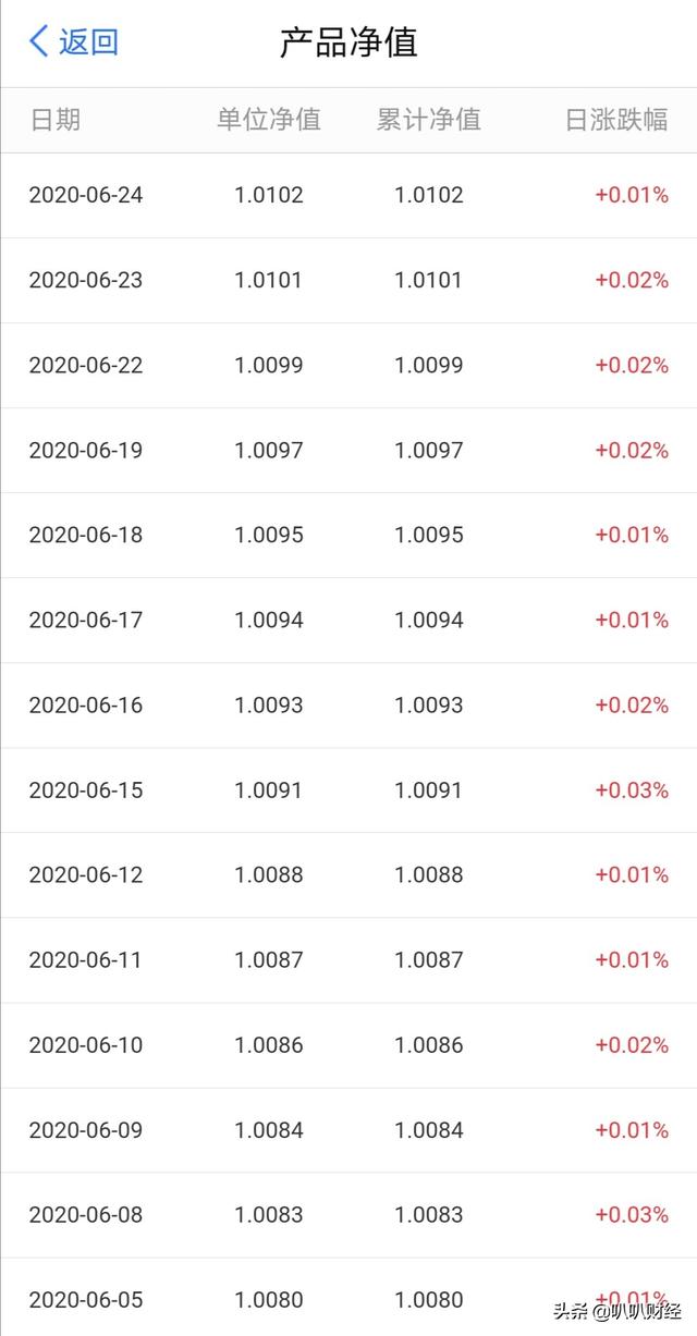 如果是风险承受能力比较弱的投资者。净值波动幅度是一个小小的挑战。如果你想了解更多该产品净值方面的数据。可以点开产品详情页面的“单位净值”。上拉了解更多。