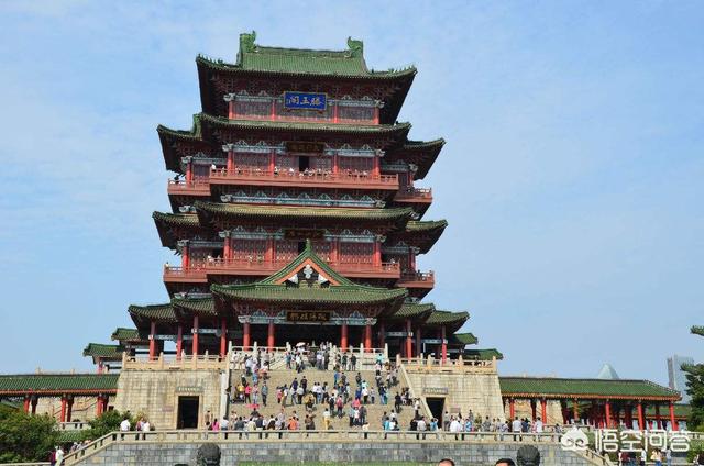 三、滕王阁。位于江西南昌。是由唐时天才诗人王勃探亲路过。为人邀宴。后作《滕王阁序》以为记录。那句“落霞与孤鹭齐飞。秋水共长天一色”。令人读来神清气爽心潮澎湃。