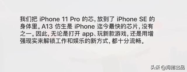相对比安卓手机来说。iPhoneSE2的配置很简单。也没有很多花里胡哨的功能设计。可它恰恰很实用。尤其是iOS13平台极其流畅。苹果也将会在未来三年继续为iPhoneSE2提供系统升级服务。意味着iPhoneSE2至少未来三年不会卡顿。而此前几代的苹果手机的确也是建立了口碑优势。同时期的安卓手机几乎已经很卡顿了。可iPhone6s、iPhone7还能做到流畅不卡。这就是iOS平台的巨大优势!