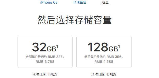 iPhone 6s 32GB版本的价格为3788元。128GB版本价格为4588元。第三方平台暂时无货;iPhone 6s Plus 32GB版本价格为4588元。128GB价格为5388元。第三方平台32GB版本价格为3999元。128GB版本价格为4899元。