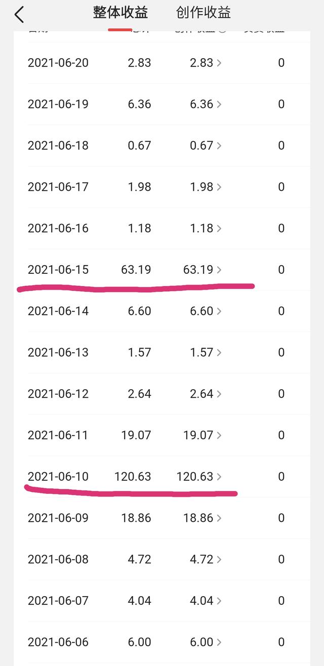 所以千粉的我。维持每天5-6元的收益并不容易。但是跌到几毛却很简单。只需要当天不更或者少更就能做到。