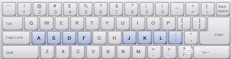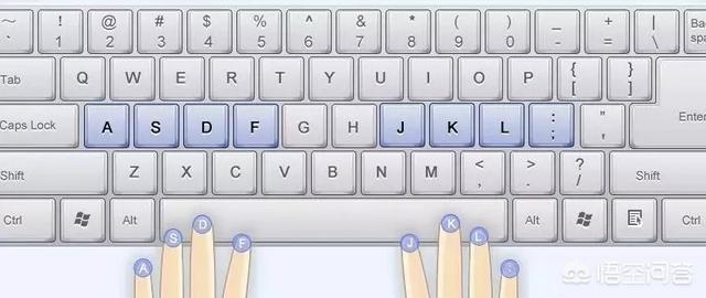 打字之前要将左手的食指、中指、无名指、小拇指分别放在【A】、【S】、【D】、【F】键上;将右手的食指、中指、无名指、小拇指分别放在【J】、【K】、【L】、【;】键上。双手的大拇指都放在空格键上。