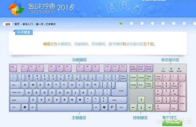 键盘分为主键盘区、功能键区、控制键区、数字键区和状态指示区五个区。