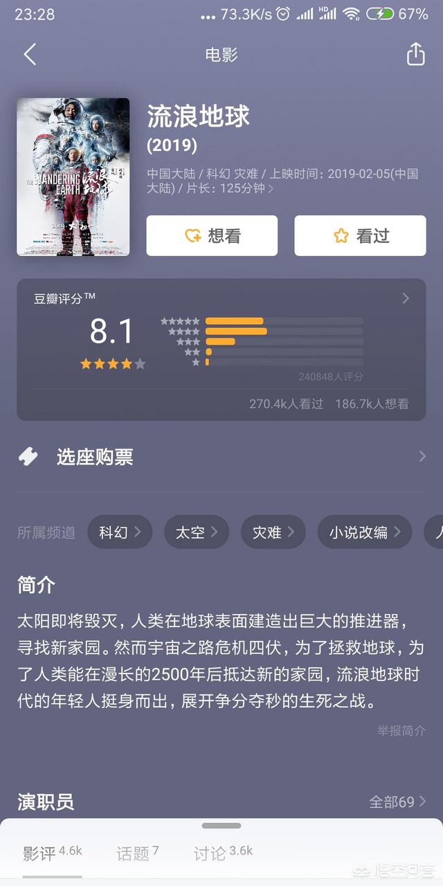 因为。流浪地球。我会立即买票去看。而不去看评分和别人的评价。