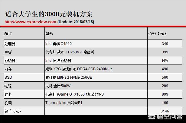 所以总得来说。3000元的装机方案。其实奔腾G4560、GeForce GTX 1050已经是最具有性能追求的方案。就现在的大学生娱乐来说。《守望先锋》、《绝地求生》、《堡垒之夜》都是基本足够玩的。更加重要的是。3000元的预算。相信大部分学生都是能够通过暑假来赚到的。那么快乐的大学生涯就已经近在眼前。