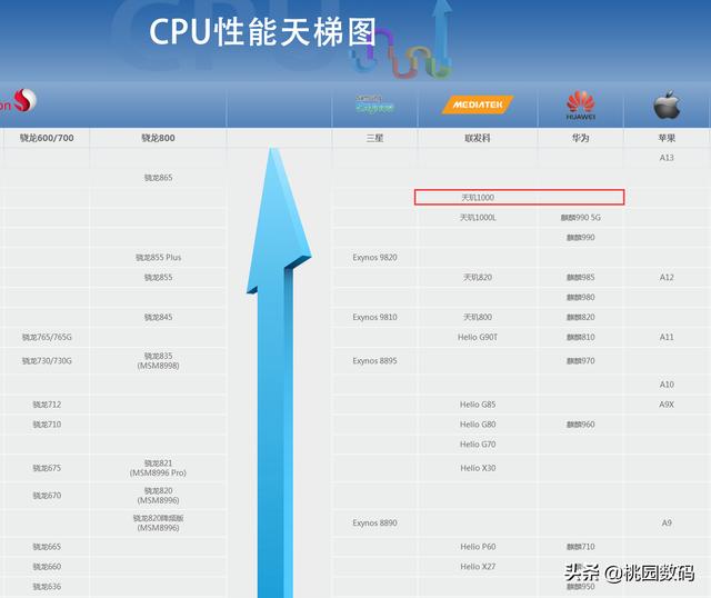 若是想知道天玑1000相当于骁龙、麒麟什么水平。直接从手机处理器天梯图里就可以一目了然了(性能略逊于骁龙865。但要高于麒麟990 5G处理器):