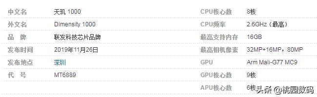 天玑1000是联发科技旗下的5G新芯片型号。具体参数如下: