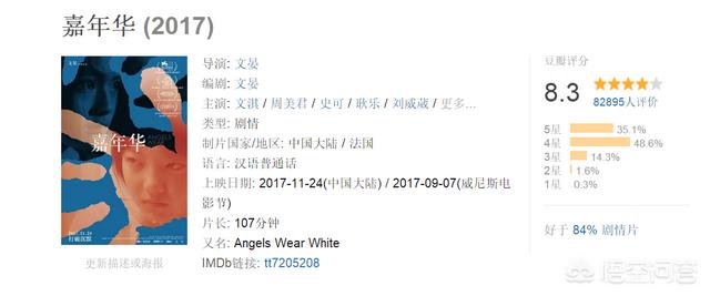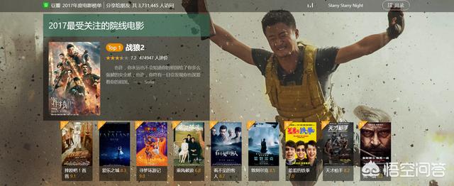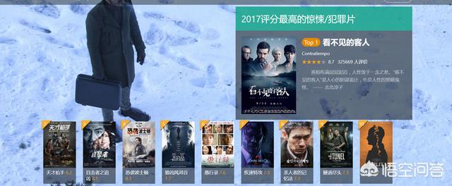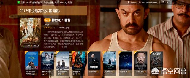 其他观点:以下是豆瓣2017年度观影报告1、2017评分最高的外语电影2、2017评分最高的华语电影3、2017年最受