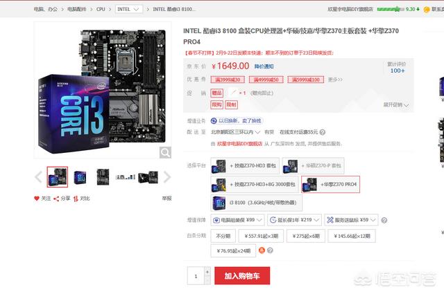 英特平台:I3 8100 +Z370主板套装 价格1650元