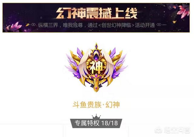 最近常在斗鱼看直播的网友应该知道。斗鱼在贵族中新增了一个创世幻神。全站只有六个。是斗鱼最高级别的贵族。特权非常多。当然了。开通条件也很高。首次开通要180万。而且资格还得抢。