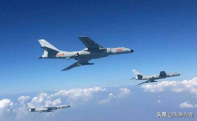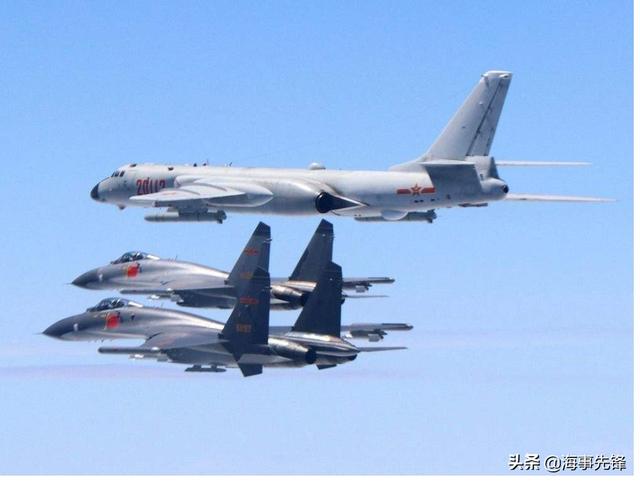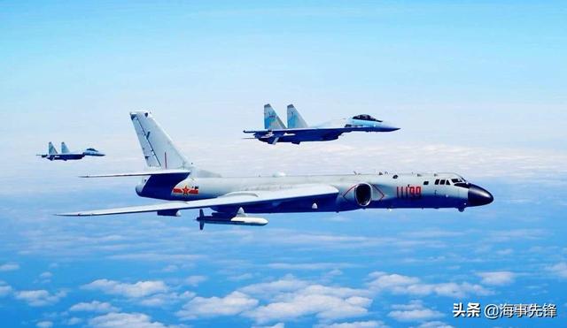 图为在歼-11B战斗机护航下在南海开展训练的轰-6K轰炸机。轰-6K航程很远。只能以重型战斗机进行护航。