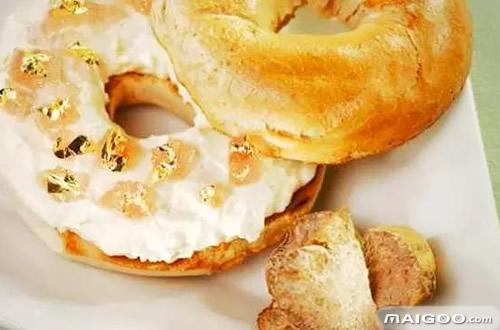 外表看起来这可能只是一枚普普通通的百吉饼。而出身名门的它内里却大有乾坤。纽约威斯汀酒店大厨Frank Tujague在这只百吉饼里加入了少量白松露奶酪和枸杞雷司令葡萄酒果冻。又有世界上最昂贵食材之一白松露的加持。身价自然不菲。