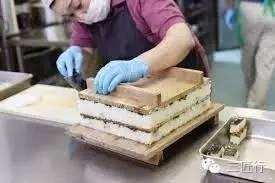 而关西的日本人发明了“押寿司”。其中最具有代表性的做法被称为“箱寿司”。至今仍在大阪及周边地区流传。做法是将米饭和相关的食材放入木盒之中。大小、材料都要整齐的排列。之后用力压紧。做好的寿司会变成四方形。然后取出来、切小块。