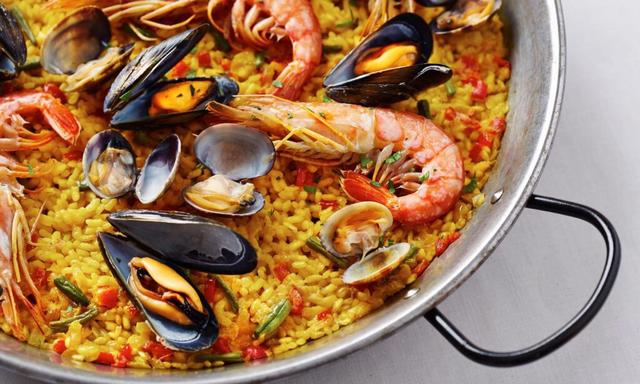 我果然还是东方人的口味喜欢吃米饭。大家熟知的西班牙海鲜烩饭也是神级存在。西班牙是地中海地区极少数以米饭为主食之一的国家。在当地。没有一种食物可以比拟这个米饭。丰富的食材凸显地中海的千滋百味。所用的瓦伦西亚米 颗颗饱满吸收了海鲜蔬菜肉肉的汤汁。一大口锅大虾贝肉鱿鱼全部加进去。酸辣口感浓郁香味尝过就会爱上。