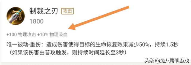 制裁之刃的主要属性是增加使用者的物理攻击以及物理吸血。简单点说就是这件装备不仅可以遏制敌方高回复英雄还可以为自己增加一定的续航能力。