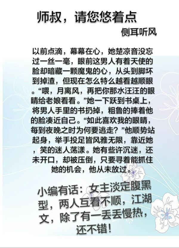 小编有话:女追男。男主身体虚弱。却掌握着实力。各方面挺像《凤囚凰》得容止。