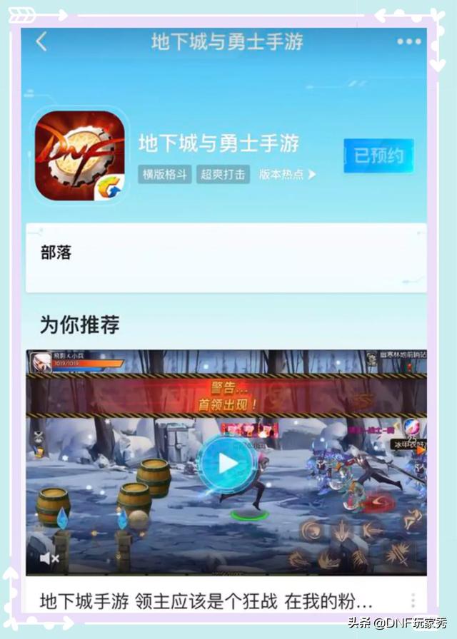 结束语:DNF手游预约界面。为你推荐阿拉德之怒手游。真够喜感。“为你推荐”!我是玩家秀。关注DNF玩家秀。深渊闪光不停。打团金牌不断。