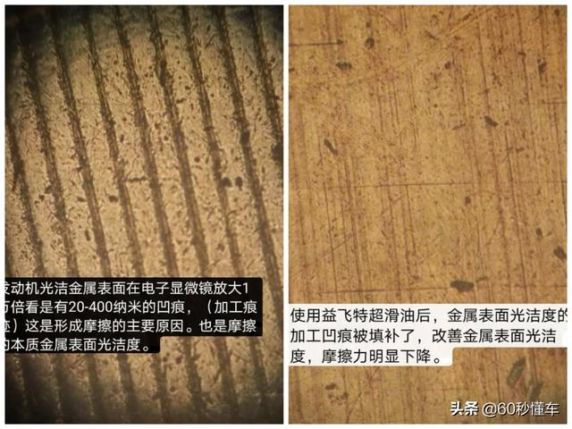 传统润滑油的只是油膜润滑而改善光洁度的消化。有的可以有效地形成一层纳米陶瓷镀膜。这层镀膜有效地降低摩擦系数70%摩擦系数从0.1级变成0.04左右。