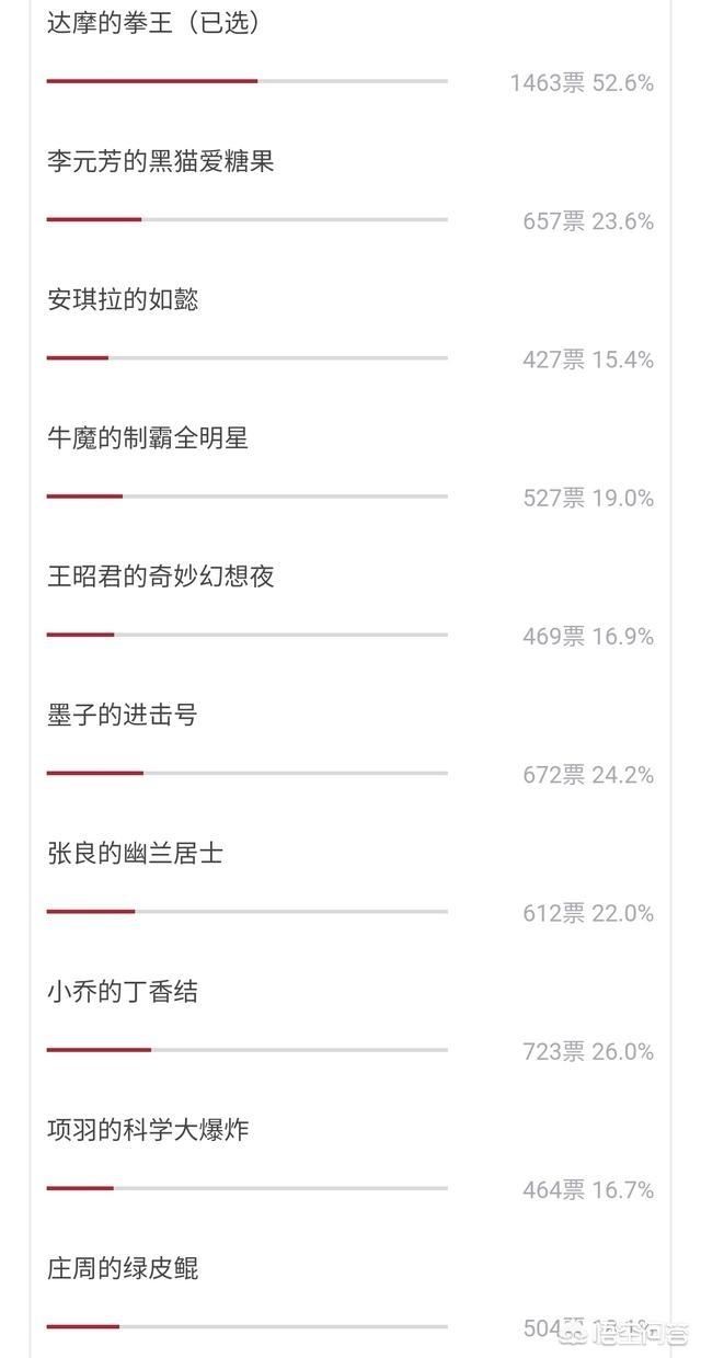 上图所示就是本次投票的最终结果了。达摩的“拳王”以绝对票数优势夺取第一名。小乔的“丁香结”获第二。墨子的“进击墨子号”获得第三。那么接下来我们就详细来品评一下这些皮肤吧。