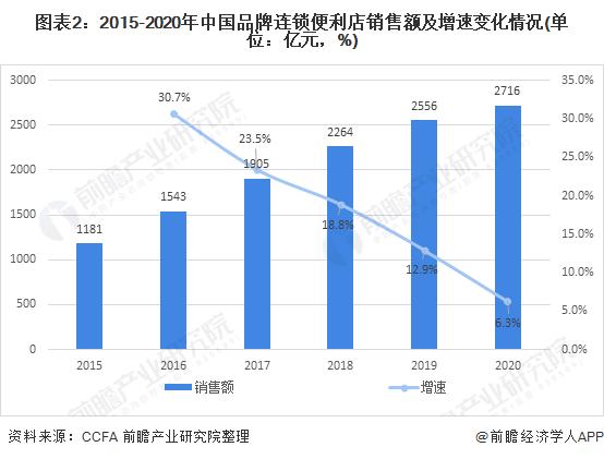 2015-2020年。我国品牌连锁便利店销售额从2015年的1181亿元逐年上升到2020年的2716亿元。增速却从31%逐年下降到6.3%。可见便利店行业在迅速发展后迎来扩张压力。增速下降明显。