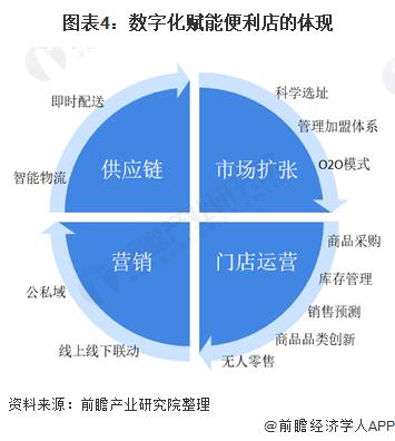 便利店厂商积极拓展线上业务是主动拥抱数字化的表现。数字化能够帮助便利店形成一个完整的经营闭环。在市场扩张方面。数字化可以帮助便利店科学选址、管理加盟模式以及O2O模式;在门店运营方面。数字化可以帮助便利店商品采购、库存管理、销售预测、商品品类创新以及推广无人零售;在营销方面数字化有助于便利店实现线上线下联动;在供应链方面。数字化对即时配送以及智能物流体系的建设有较大帮助。