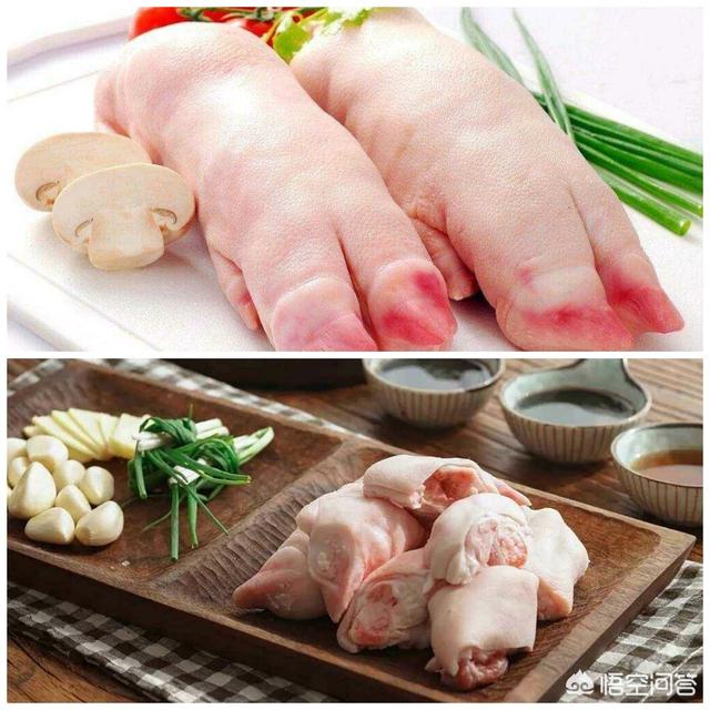 猪蹄分前后两种。前蹄肉多骨少呈直形。后蹄肉少骨多呈弯形。猪蹄中含有丰富的胶原蛋白具有美容养颜的作用。是女士的最爱。猪蹄营养丰富。据《随息居饮食谱》所载。能“填肾精而健腰脚。滋胃液以滑皮肤。长肌肉可愈漏疡。助血脉能充乳汁。较肉尤补”。民间常用猪蹄沌汤催乳。