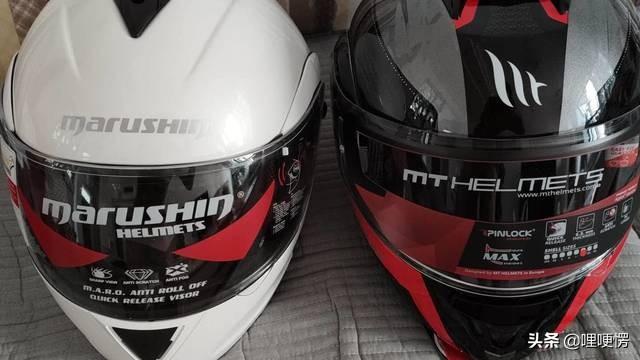 隔了两天马鲁申也终于到了。我一直觉得马鲁申作为多年的大牌。会比MT好才对。当时看中马鲁申还有个原因是这个盔是玻璃钢的。肯定要比ABS工程塑料好。MT的那个是ABS工程塑料。但是到手以后。发现头盔揭面部分开合有点困难。红色开关做的也不是很对称。不使大力气根本打不开。带上以后没有MT舒服。更为勒头。但是这个XXL的马鲁申。已经是63-64的头围了。