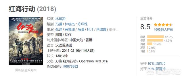 《红海行动》豆瓣评分8.5。这个评分是国产片的佼佼者了。所以即使没有大明星。也不是合家欢乐的喜剧片。依然有那么多观众为他打call!