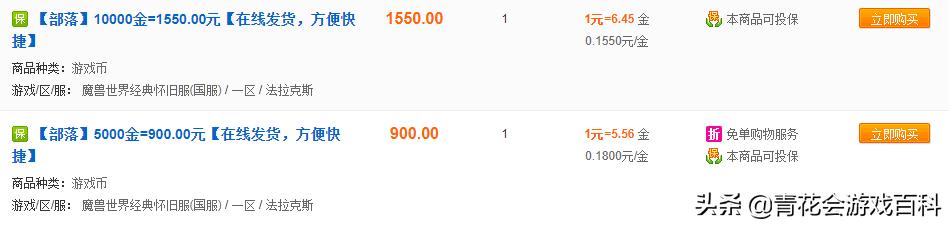 看到这事之后我又赶紧去查了一下当前的金价。大约是1550元=1W金。