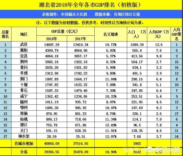 总体来看。湖北省GDP总量位居全国第七位。实力不错。但是湖北省17个城市。接近一半的GDP来自于武汉、襄阳、宜昌三个城市。